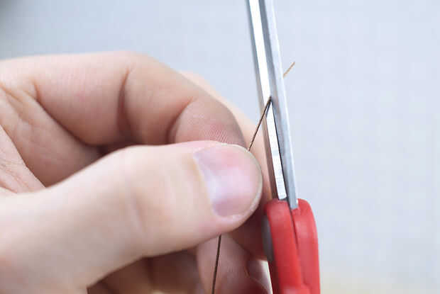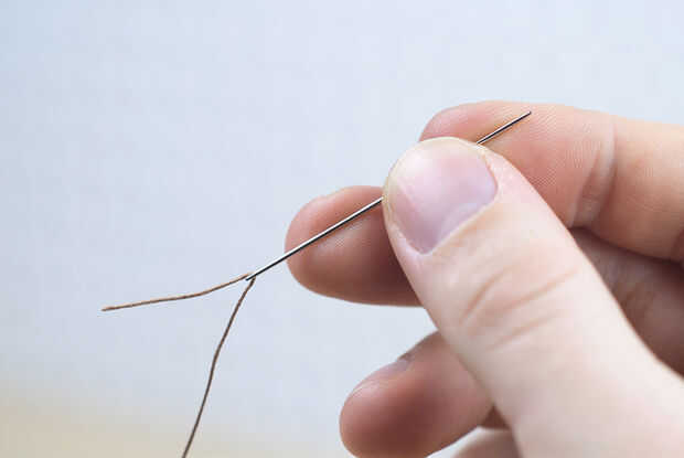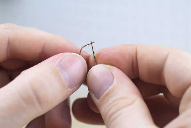 Si el extremo del hilo se convierte en deshilachado, corta otra vez en un ángulo, quitando como poco posible. Enhebrar las agujas puede tomar algunos intentos.