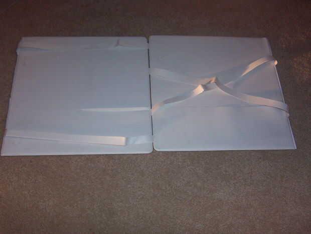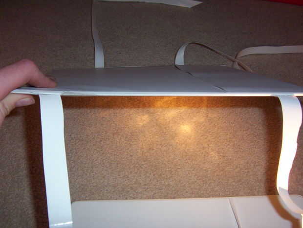 Tomar la carpeta dos lados y medida donde cada tira se y márquelo. Corte las ranuras en la parte inferior el de las marcas que hiciste. Corte la parte superior. Mira las fotos. Deslice las correas a través de sus cortes. Apriete para arriba para el papel no caigan y finalmente pegamento.