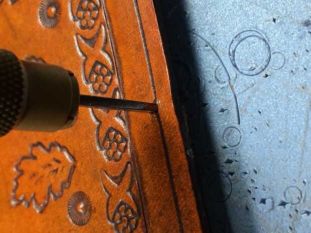 ayuda a usar cera de abejas en sus golpes de vez en cuando para que salgan de los agujeros más fácil y no tiene que manipular demasiado el cuero, usar una carpeta de hueso o una regla para mantener mi piel hacia abajo mientras yo meneo mi punch de cuero si conduce demasiado profundo.