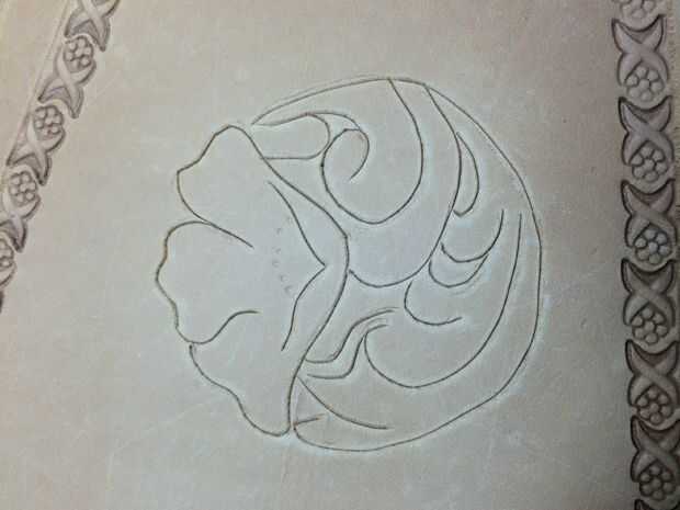 Trazado en la imagen con un corte de cuchillo giratorio en forma de 1/2, esto le dará un bonito borde profundo al biselado