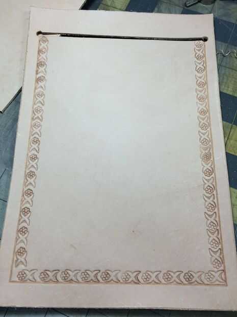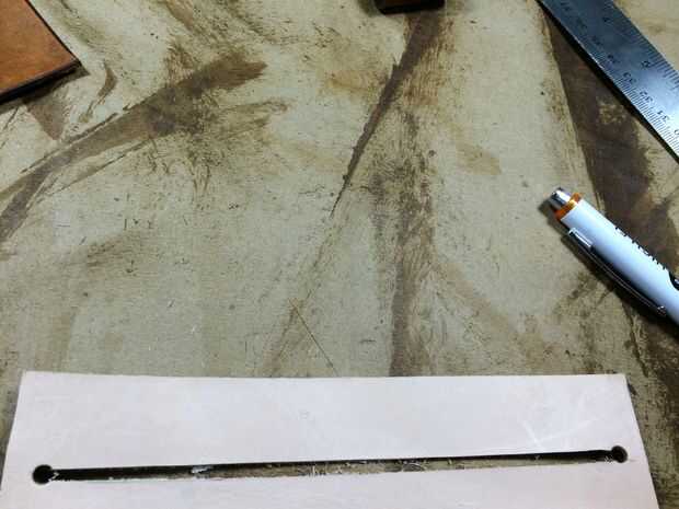 Yo encajonado el cuero marcó una línea con los divisores de ala en ambos lados de los orificios hacia abajo y detuvo a 1/2 pulgada hasta tener incluso con la parte inferior de panel de bolsillo y luego con mi regla hace una línea en la parte inferior en la marca de 1/2 pulgada,