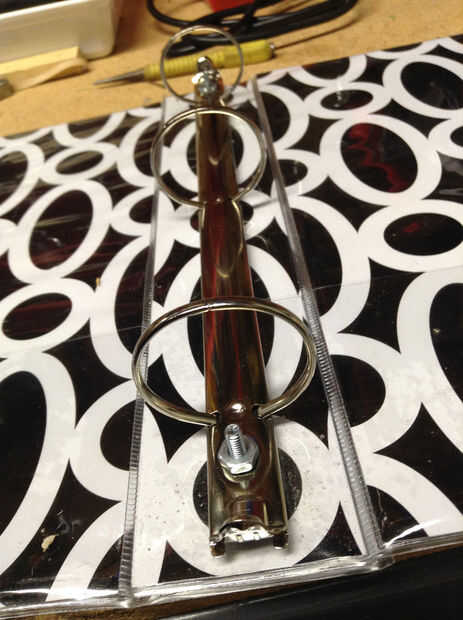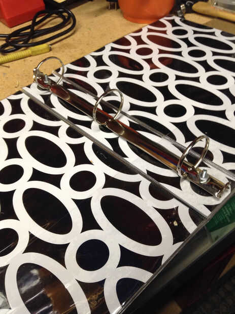 Puso una espina sobre el otro, formando una columna doble de capas. Asegúrese de que coincidan los 2 agujeros en cada cuaderno.