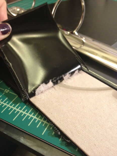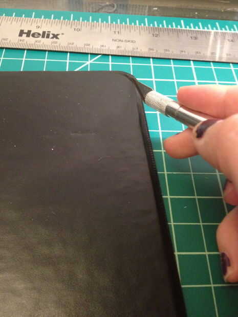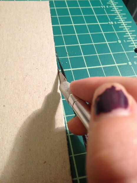 Comencé cortando a lo largo de un lado. Trate de no dañar la madera prensada como cortar el vinilo.