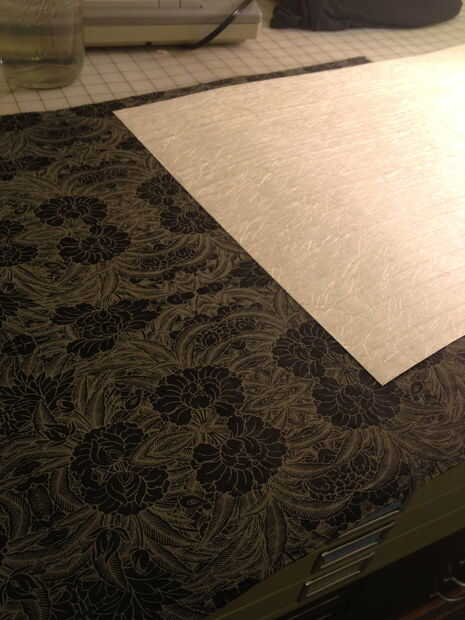Hay muchas clases de papel que usted puede comprar y todas tienen diferentes pesos, se ve, se siente y sirven a propósitos diferentes. Para este proyecto, usar un peso más pesado del papel de arroz para la columna vertebral. Es mucho más grueso que el papel de la computadora, pero aún flexible. Desea que el papel de columna vertebral para ser peso pesado por lo que es más durable. Esta es la parte de su carpeta que recibirá más de desgaste. Para las piezas F y B, usé un papel decorativo que es ligeramente más delgado que el papel de columna vertebral. Pagué alrededor de $4,00 por cada hoja de papel. Concedido, el papel de columna vertebral quedó de otro proyecto. Y aún he dejado sobre las piezas de cada papel.