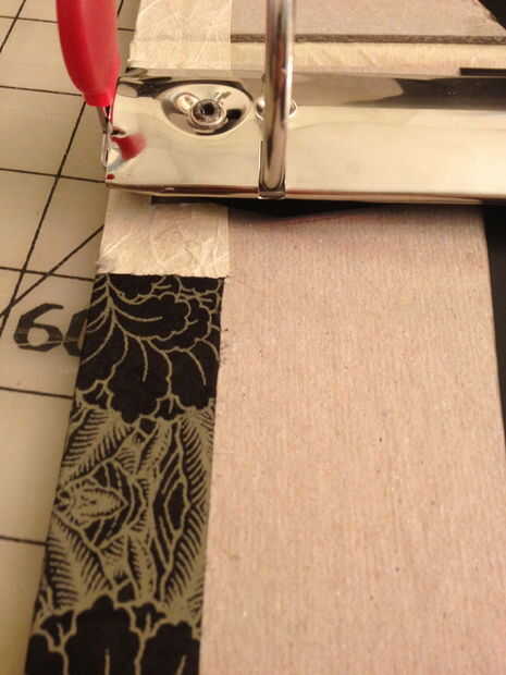 Coloque una hoja de papel de cera debajo de la solapa inferior. Pintar el borde inferior y doblar para arriba sobre la tabla. Utilice su hueso u objeto oblongo duro a Presione suavemente contra la orilla. Cubrir ese lado con papel de cera y barron para extraer cualquier burbuja de aire.