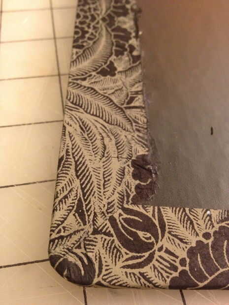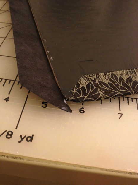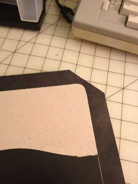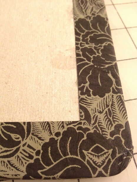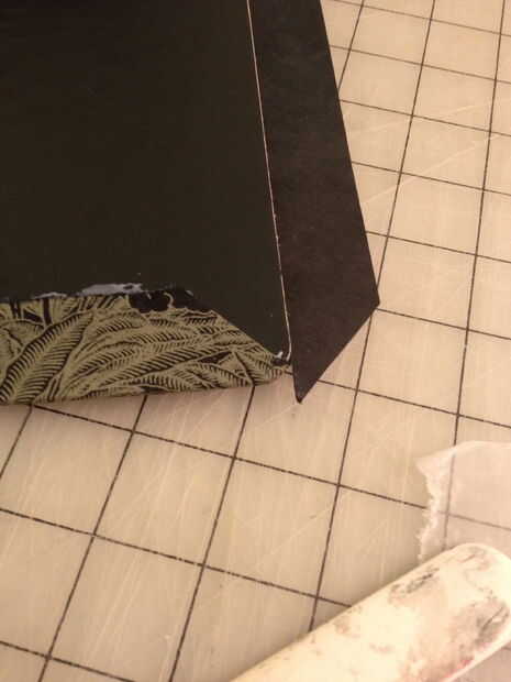 Cortar las esquinas sobre un 1/8 de una pulgada lejos de la esquina de la madera prensada. Este espacio es para tener en cuenta el espesor de la madera prensada al doblar el papel para arriba sobre él. Usted quiere asegurarse de que el corte es un cercano 45 grados. VEA LA FOTO.