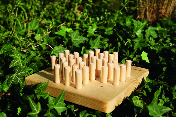 Las piezas consisten en longitudes aserradas de espiga. El pasador debe ser de un tamaño que encaja en los agujeros que sólo han perforado, preferiblemente como perfectamente posible. Sierra de 32 piezas del mismo tamaño para jugar zorro y ovejas o solitario, pero asegúrese de hacer algunas piezas adicionales mientras estás en él. Piezas tienen tendencia a desaparecer!