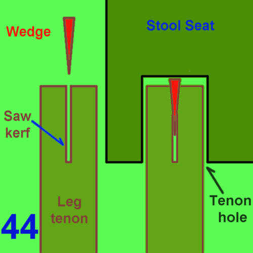Otra forma de colocar las piernas si está utilizando madera que es todo bastante seco, debe utilizar una cuña de demonios. Llamado así porque una vez que esté en su lugar es difícil de volver hacia fuera. Ver la Figura 44.