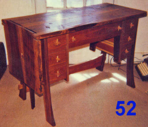 Foto 52 muestra una nuez y cereza escritorio con una aleta con bisagras de costura.