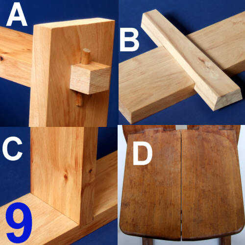 Foto 9-A una espiga suele ser una pieza redonda o cuadrada de madera que va parcialmente o completamente a través de un orificio del otro pedazo de madera. Aquí puede ver una espiga cuadrada.