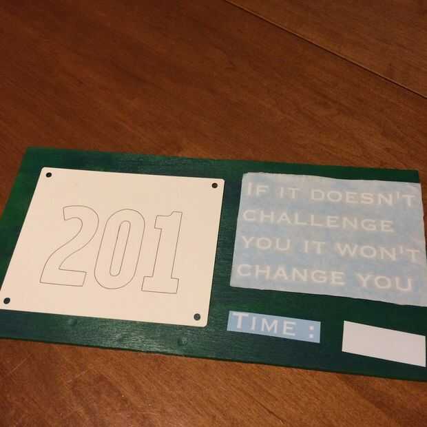 Para aquellos sin vinilo y una máquina de corte: las letras pueden ser pintadas en su lugar. Para el "intervalo", bastará con un trozo de cinta. El vinilo o cinta crea una superficie que puede escribir en el y borrar con rotuladores de pizarra blanca.