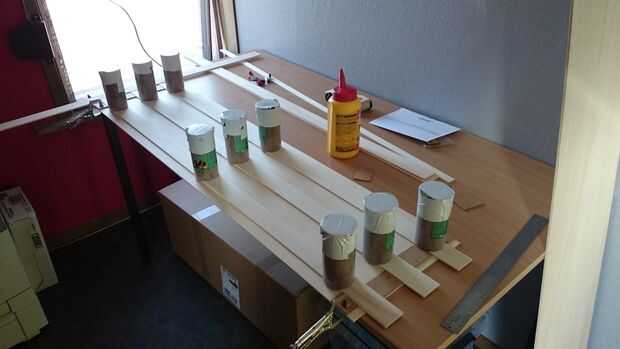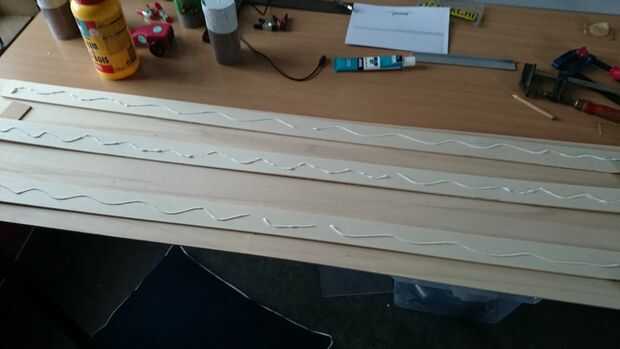 El 6 piezas de pista recta es muy fácil. Para hacer aún más fácil para mí, tenía la madera contrachapada precortada de la tienda, por lo me dio (para todas las pistas):