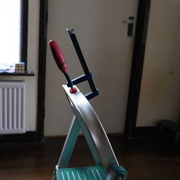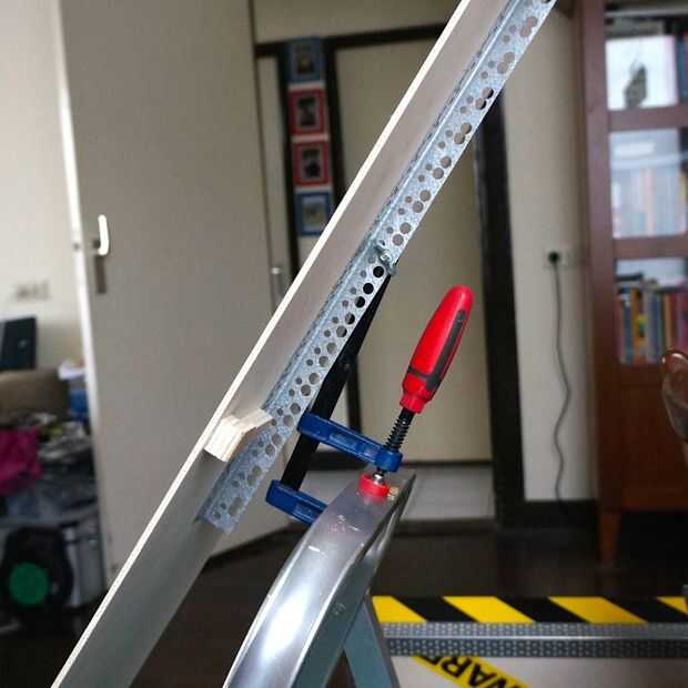 Para configurar la pista, simplemente deslice las piezas de la pista en sí. Para la parte vertical he usado una abrazadera de madera que puedo conectar a una mesa, silla o cualquier otra cosa.