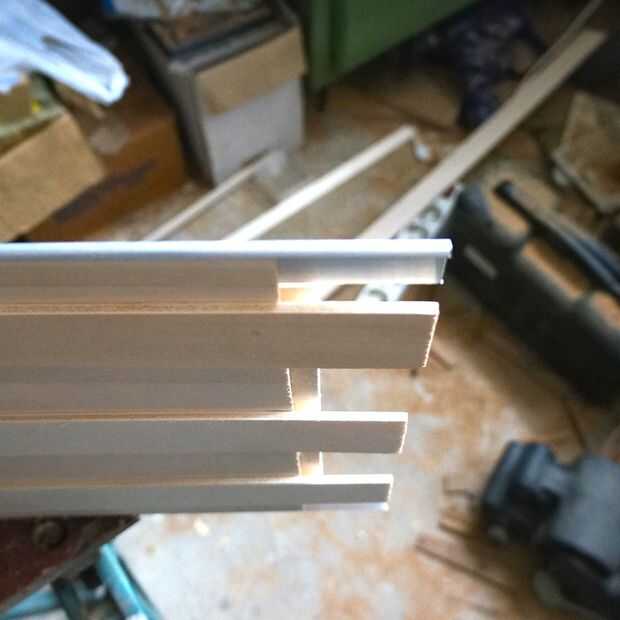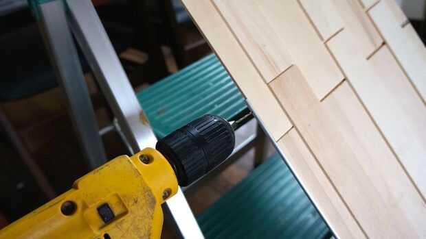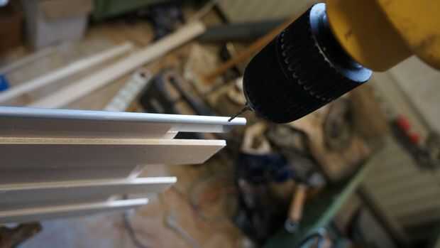 Para asegurarse de que la pista se queda juntos durante una carrera, perforé algunos orificios en la parte del perfil L de aluminio al final de las piezas de la pista. A continuación, armar la pista y había perforado a través del agujero la madera de la parte de pista siguiente. Cuando ahora se pegan un clavo en este agujero, no se puede separar las partes de la pista.