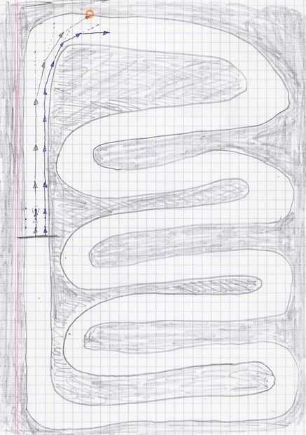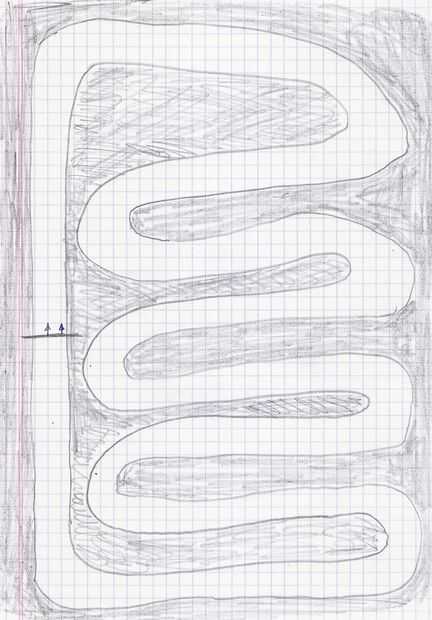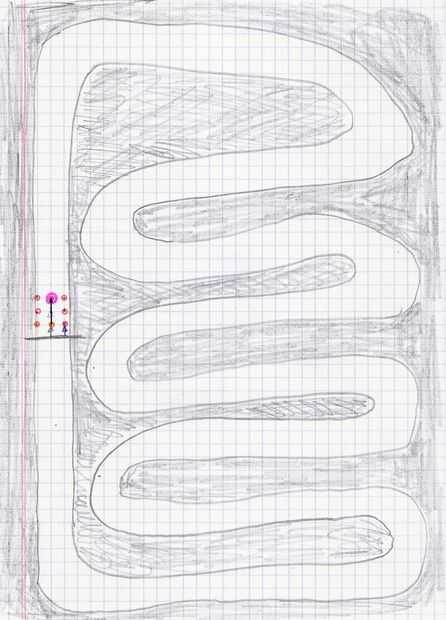 Antes de comenzar a jugar, usted debe revisar las instrucciones para los principiantes tener en cuenta. Puede mezclar el orden de salida, o decidirlo que quieras. El orden no afecta demasiado en el resultado de la carrera. Cada jugador tiene una carrera de coches, representada por un vector de longitud 1 para empezar (ver foto), comenzando en la línea de salida. Longitud representa la velocidad. En cada toma cada coche termina en una intersección de la cuadrícula. La tasa puede ser aumentada, disminuida o desviada en un cuadrado pequeño en cada disparo. Esto significa lo siguiente: para determinar la nueva posición de coche y la velocidad del coche nuevo, vector debe proyectar hacia delante una vez (con una regla, si es necesario), y entonces el jugador elegirá una intersección entre 8 alrededor de la punta del nuevo vector. Si la proyección del vector, antes de aplicar la modificación, queda fuera de la pista (considerada como el límite del borde externo de la línea), el coche es declarado despistado. Por lo tanto es necesario mantener una velocidad que hacen la vuelta siguiente sin desviado.