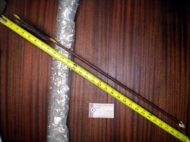 Su longitud total de la flecha debe ser por lo menos 10 pulgadas más largo que la medición del paso 2 para acomodar para remeras, lazos de tendones y flecha punto. Una flecha de 28" fue llenada totalmente con 19 pines de actividad.