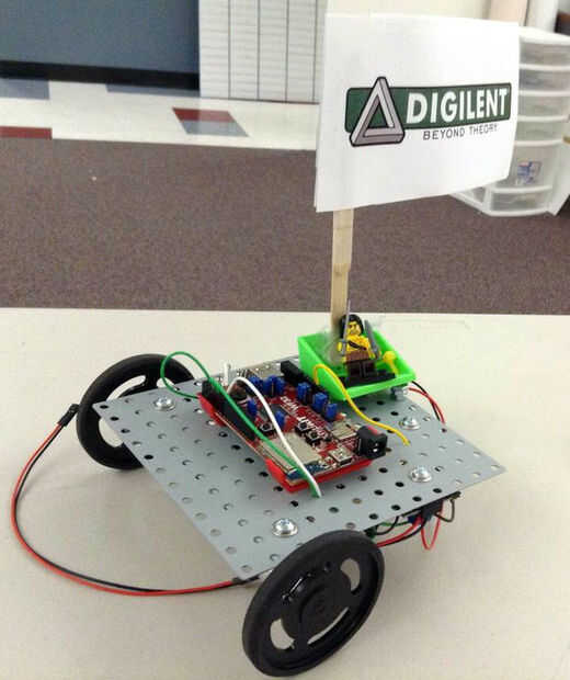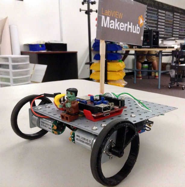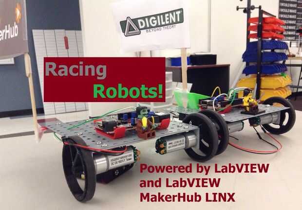 Este proyecto utiliza LabVIEW, un microcontrolador de WF32 chipKITy un Controlador de movimiento de salto para correr dos robots. LabVIEW MakerHub LINX se utiliza para la comunicación entre LabVIEW y el microcontrolador. Biblioteca A LabVIEW MakerHub para el salto se utiliza para rastrear la posición de la mano y luego los picos y valles se miden. Cuanto más rápido su mano se mueve hacia arriba y hacia abajo, cuanto mayor sea el ciclo de trabajo de PWM. Ciclos de trabajo más alto hace que los motores gire más rápido y aumentar la velocidad del robot. Por lo tanto, la persona que agita su mano hacia arriba y hacia abajo más rápido tendrá su robot cruza primero la línea de meta. ¡ Mira el video de YouTube para ver una explicación más a fondo.