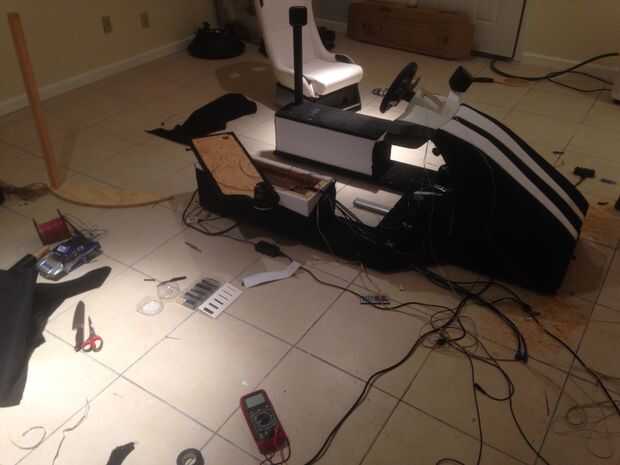 Conectar el volante, pedales. Añadir los cables de altavoz para el frente L/H y lado derecho. Añadir el HDMI, Cables de alimentación (Cables Audio) del proyector.