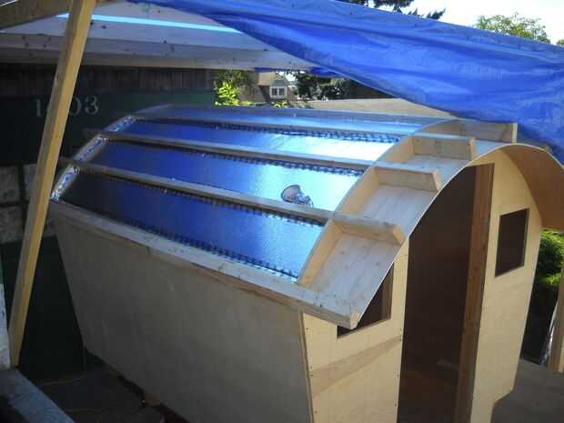 Esta es mi granja para gitano carro de granja.He construido enteramente con materiales rescatados, excepto el vinilo marino en la azotea (como la lona resistente a la intemperie, en que primero puse había perdido su weatherproofness).También construí