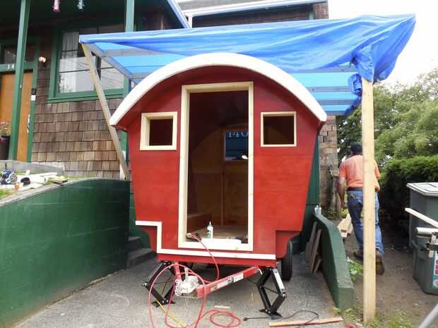 Esta es mi granja para gitano carro de granja.He construido enteramente con materiales rescatados, excepto el vinilo marino en la azotea (como la lona resistente a la intemperie, en que primero puse había perdido su weatherproofness).También construí