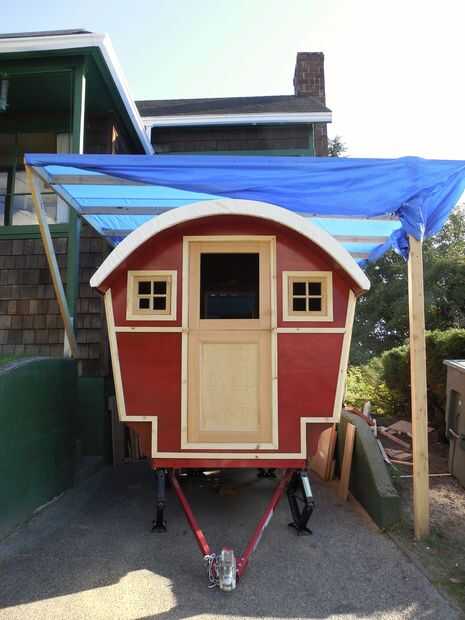 Esta es mi granja para gitano carro de granja.He construido enteramente con materiales rescatados, excepto el vinilo marino en la azotea (como la lona resistente a la intemperie, en que primero puse había perdido su weatherproofness).También construí