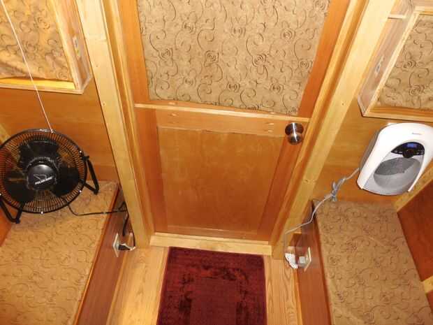 Esta es mi granja para gitano carro de granja.He construido enteramente con materiales rescatados, excepto el vinilo marino en la azotea (como la lona resistente a la intemperie, en que primero puse había perdido su weatherproofness).También construí