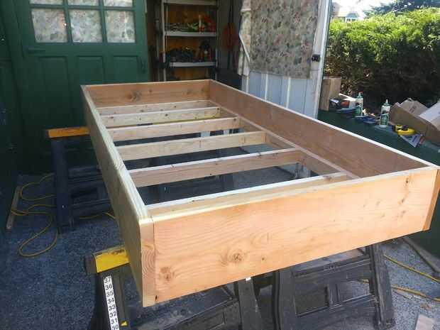 Paso 3: Bastidor de piso es 2x4s... sólo podría golpear una hoja 4 x 8 sobre esto pero yo tenía miedo de la desviación.