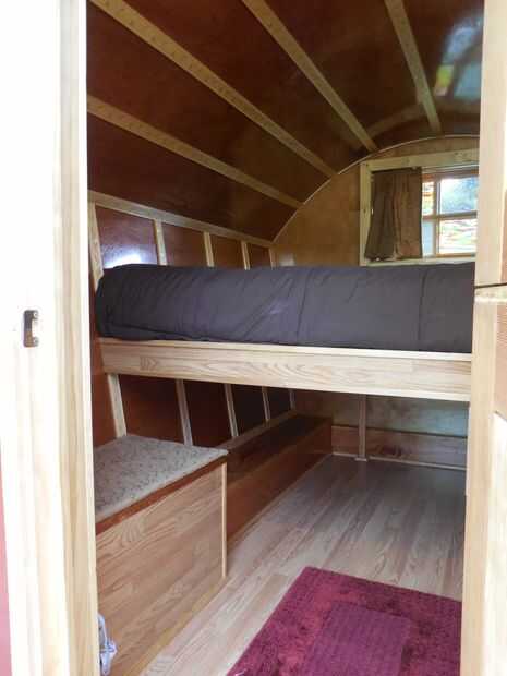Esta es mi granja para gitano carro de granja.He construido enteramente con materiales rescatados, excepto el vinilo marino en la azotea (como la lona resistente a la intemperie, en que primero puse había perdido su weatherproofness).También construí