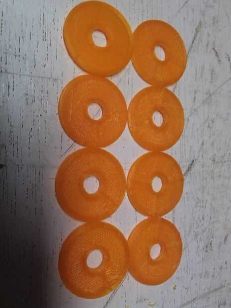 Va a llevar 8 arandelas y 2 titulares. Les imprimí con PLA con mi impresora menos marco. altura de la capa.3. El relleno no importa igual estas piezas casi será sólidas de todas formas debido a la pared gruesos son tan delgados.