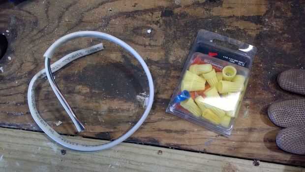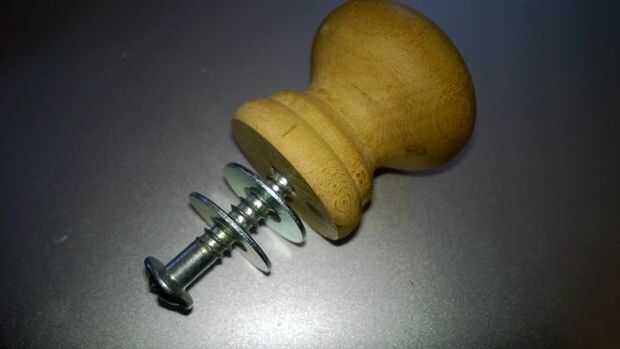 Esta mañana me detuve en mi tienda de hogar y comenzó la búsqueda de piezas. Me tomó un tiempo pero finalmente encontré todas las piezas que necesitaba. Ya tenía el cable y la bobina y que tenía una perilla de madera de una pieza de mobiliario que fija para arriba. Oh, también utilicé un trozo de alambre eléctrico doméstico y una tuerca para alambre, que ya tenía.