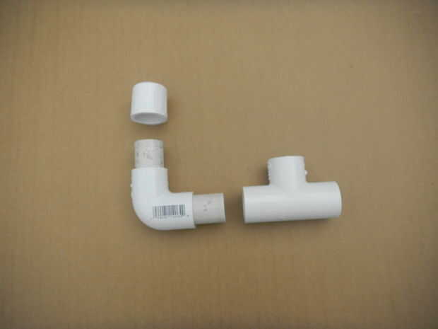 Montar un ¾" t, tubo de 2" grado longitud Class200pe ¾" PVC, un codo de ¾", 2 "de longitud Class200pe grado ¾" PVC pipa y una gorra de ¾".