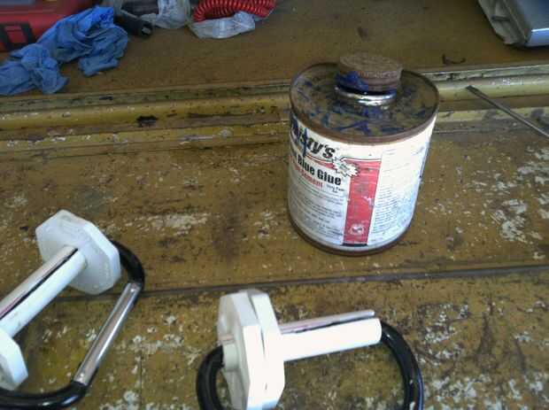 Pegar los extremos. Me pareció más fácil Deslice los extremos hacia el centro de la tubería y apenas puso el pegamento en el tubo y deslice los extremos hacia el borde. Luego Envuelva el tubo con cinta elec para cubrir el partido.