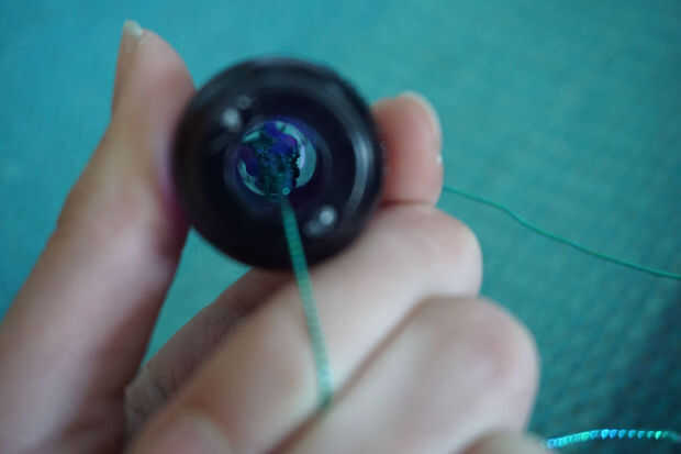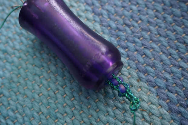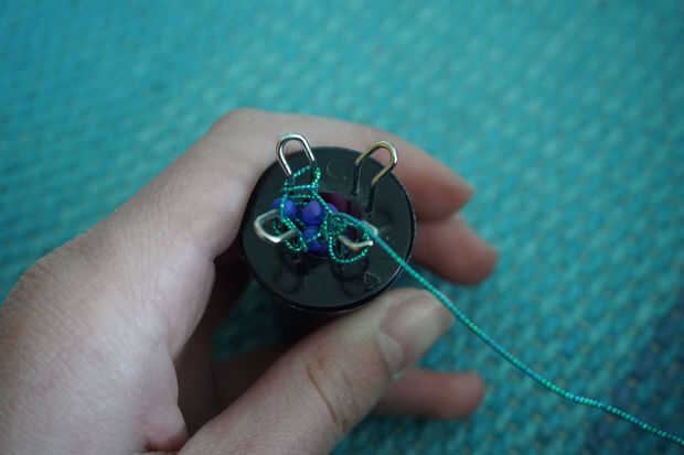 Tomar la parte inferior elástica en la punta (deben ser dos lazos, uno de la base original y de colocación en el exterior) y tire de él sobre el diente con el ganchillo. Continúe alrededor del carrete, trayendo el elástico y tejer como vas. Cuando quiere poner en bolas, basta con pulsar uno de los granos hasta los dientes. Cuando estés a punto de tirar un lazo sobre un diente, asegúrese de que usted tire sobre el talón, así. La pequeña flecha o marcador en su telar que te dije fue importante voluntad ayuda usted seguimiento de cuantas rondas de cuentas le ha hecho. Me gusta alternar una ronda de tejido con una ronda de granos.