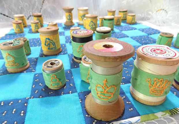 Después de recoger bastantes carretes de madera vintage de ventas de Fincas, tiendas de antigüedades y donaciones de amigos, pensé que era hora de que hice algo con ellos. Recientemente adquirió dos bobinas grandes y pensamiento se hacen piezas de ajedrez grandes, así que aquí está cómo hacer un ajedrez con temas de coser establece.