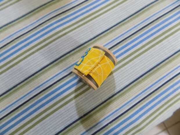 Enrollar la tira alrededor del carrete y pliegue el borde debajo del borde presionado.