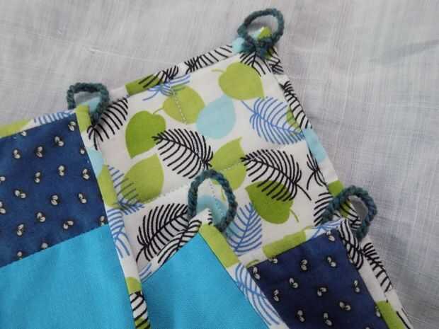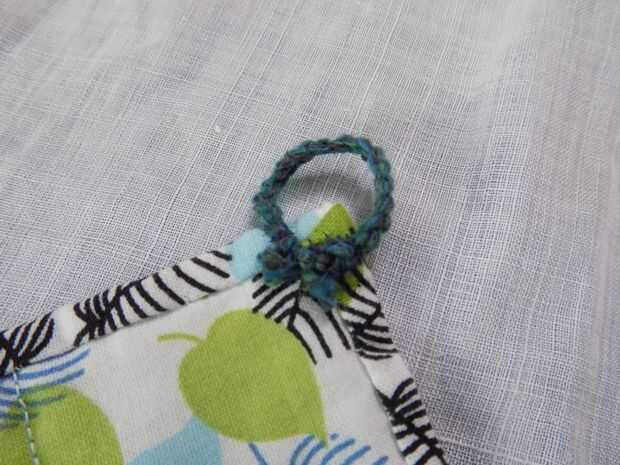 Su ajedrez sistema más portable, de punto o crochet pequeños bucles y puntadas en las esquinas de la placa de tejido.