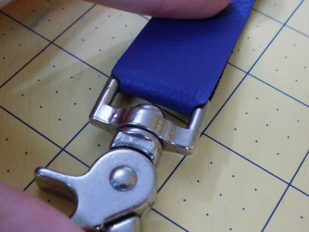 Enrolle a través de la hebilla y remache en lugar. Si la tira es mayor que su cierre, puede utilizar un sacador de cuero hacer muescas en el lado de la tira donde se superpone la hebilla.