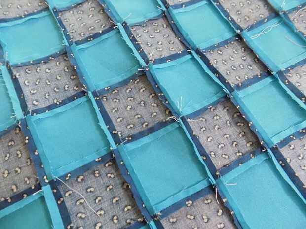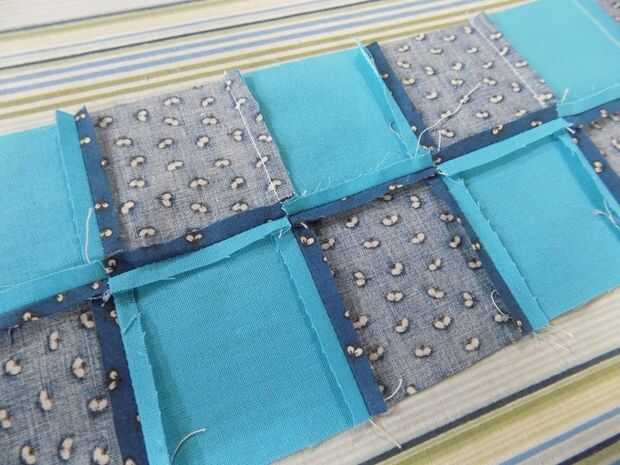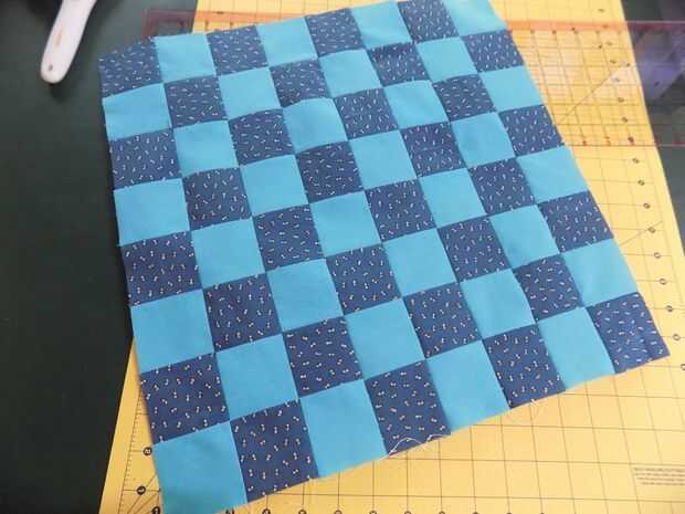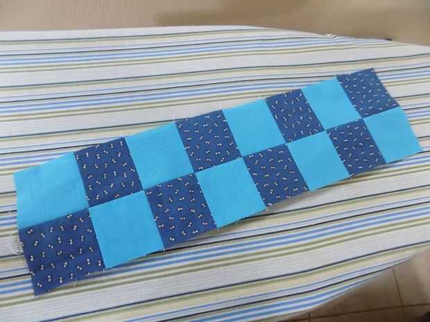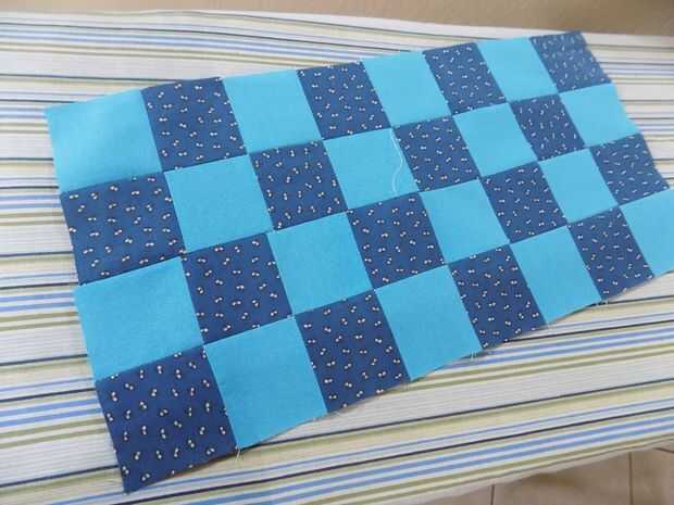 Coser juntos tus franjas asegurándose de que cada tira se alterna entre los dos colores tanto vertical como horizontalmente.