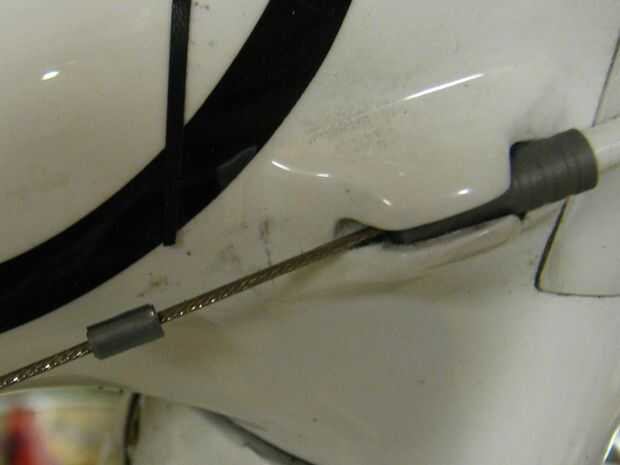 Usted necesita algo que conecte firmemente bastante para el cable y ser lo suficientemente visible para ver por la ventana. Un pedazo de cinta adhesiva funciona bien. Corte 1/4" de ancho y 1-1/2" de largo y envolver firmemente alrededor del cable. Pinzas son útiles.
