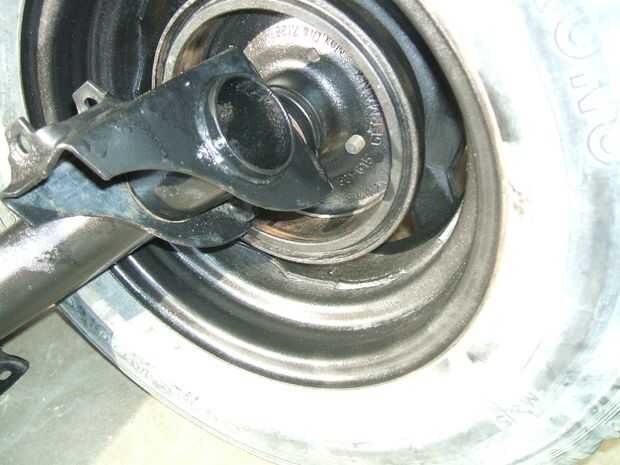 Con el freno de respaldo placa ido, esto hace un conjunto muy limpio. Nota que la descarga inferior se monta en el lado izquierdo de la foto. En el paso 10 que el soporte externo de este montaje se utilizarán para asegurar el eje delantero al bastidor de apoyo.