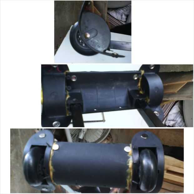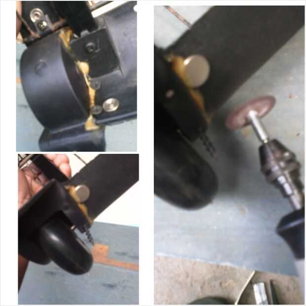 Me pegan las ruedas a la base de la carretilla con pegamento y utilizar tornillos para fijarlo, luego cortar el extremo de los tornillos con una dremel.
