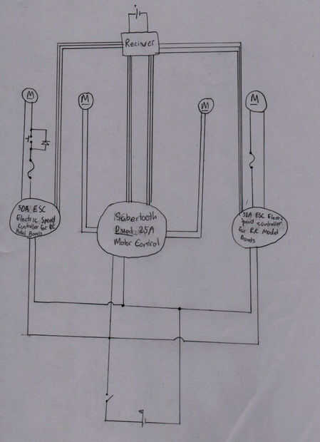 Aquí hay un enlace para ayudar con el cableado del controlador motor Sabertooth dual 25A: