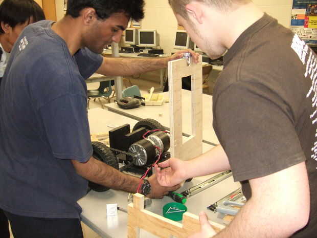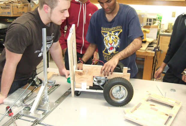 Es un modelo de un montacargas de trabajo que explica elhidráulica utilizando algunas jeringas que mueve hacia arriba y hacia abajo la horquilla de la carretilla elevadora y agarra las cosas que viene delante de él.El de la mejor parte es que incluso