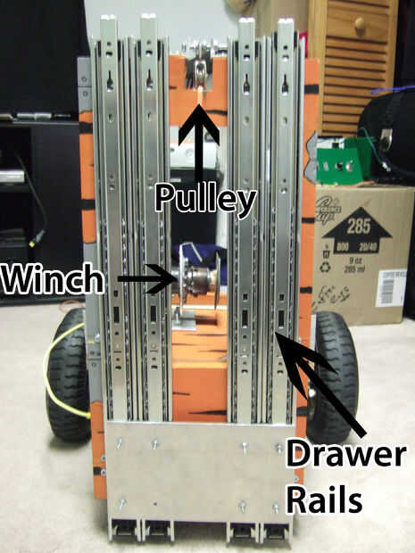 Diapositivas del cajón fueron utilizados como rieles para el elevador.