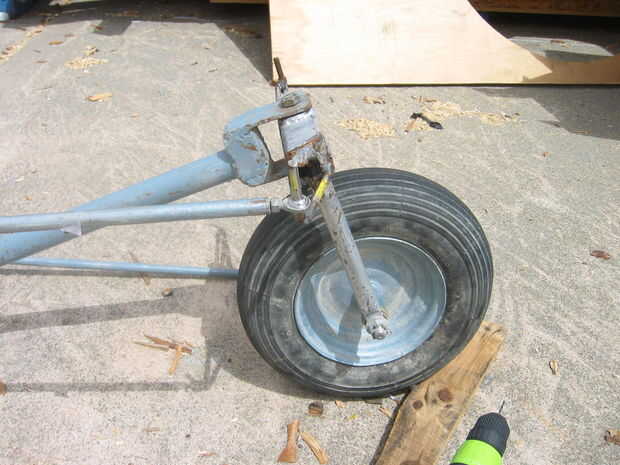 Uno de los brazos de dirección había roto la horquilla y se perdió. Ayudó a Greg doblar y soldar uno nuevo de barra de acero inoxidable. Mientras estábamos en ella reforzamos el otro brazo dirección