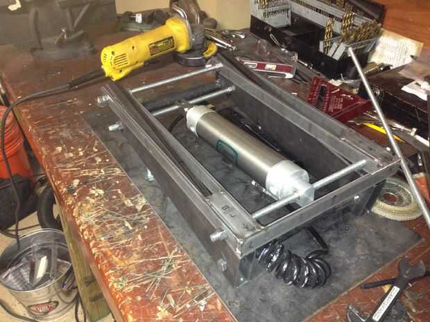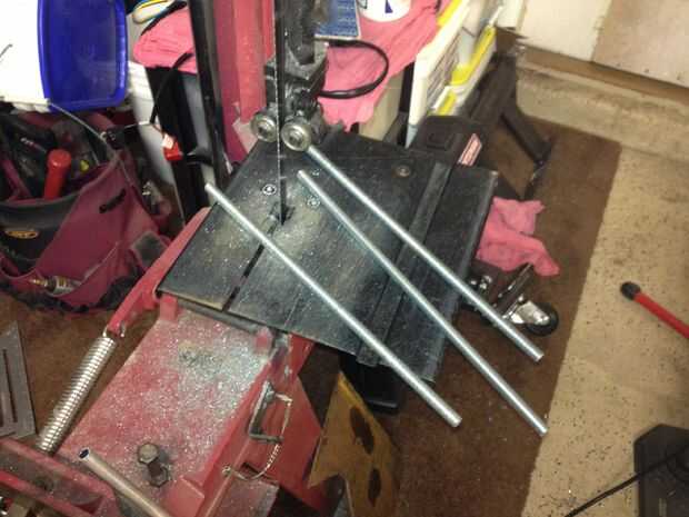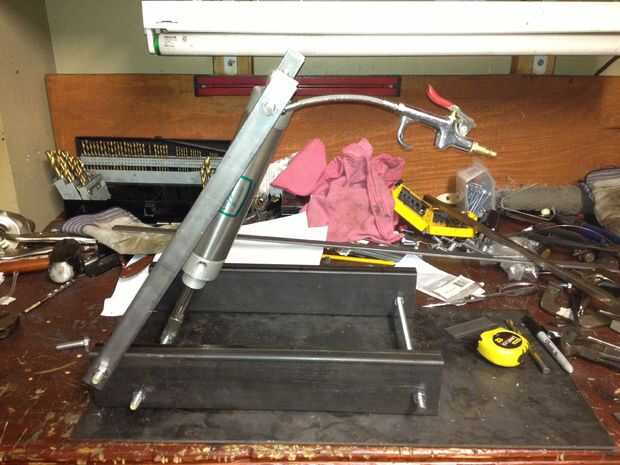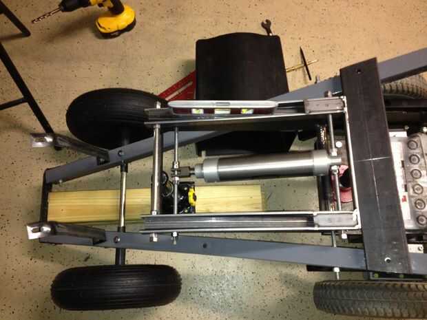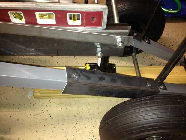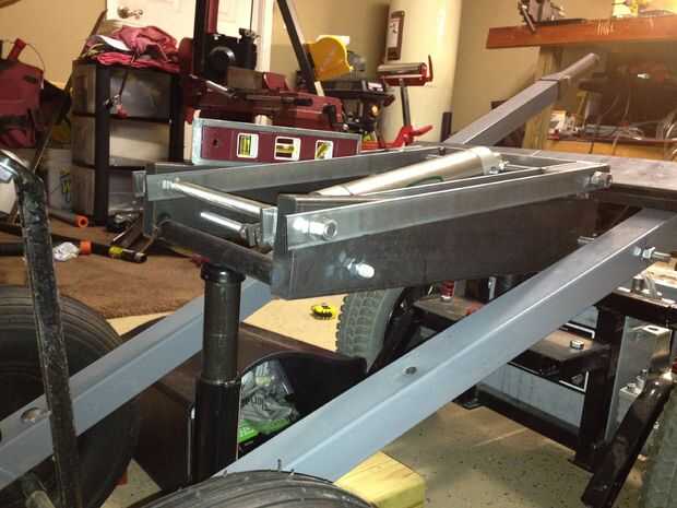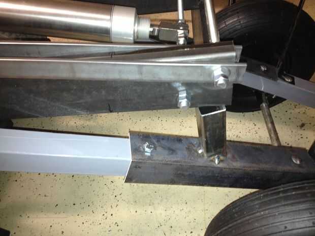 First, measure cylinder closed and at full stroke. A continuación, mida la abertura entre la carretilla maneja y a continuación cruzar miembros de apoyo. A continuación, coloque corte y perforar localizaciones en el material. A continuación, cortar y perforar el material. A continuación, montar el material modificado como se muestra. A continuación, compruebe el ajuste y prueba de movimiento. A continuación, ajuste y tachuela suelden el material de refuerzos del mecanismo de elevación en lugar como se muestra. A continuación, compruebe el ajuste y prueba de movimiento. A continuación, compruebe el ajuste del montaje del neumático en el marco de la carretilla. Asegúrese de que el montaje esté centrado y nivel. A continuación, en el marco de la carretilla, localizar y perforar el marco para recibir el punto de pivote delantero del montaje. A continuación, deslice los hilos por todos a través del cuerpo y levante y atornille en su lugar. A continuación, corte la parte sobrante hilo todos. A continuación, apoyo conjunto de elevación y el nivel. A continuación, medir, cortar y perforar acero ángulo para sujetar a la parte inferior del bastidor de la carretilla. A continuación, fíjelo al ángulo de acero. A continuación, mida, corte y soldadura que descansa la parte frontal para el montaje de la tachuela. A continuación, medir, cortar, perforar y perno en el soporte de la bisagra de carretilla frontal. A continuación, medida, corte y tachuela suelden la bisagra de carretilla frontal. A continuación, medida, corte, tachuela soldar el soporte de la bisagra marco frontal. A continuación, medir, cortar y perforar el interior pasador de la bisagra delantera. A continuación, compruebe el ajuste y movimiento. A continuación, retire la carretilla. Medir, cortar, perforar y perno en el soporte de acero carretilla posterior. A continuación, vuelva a instalar el perno carretilla y bisagra. A continuación, medir, cortar, verificar cupo-para arriba, instalar y tachuela suelde los brazos de pivote trasero carretilla para el apoyo posterior de la carretilla. A continuación, compruebe el movimiento y hacer los cambios necesarios.