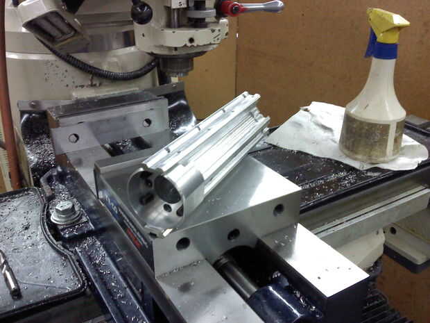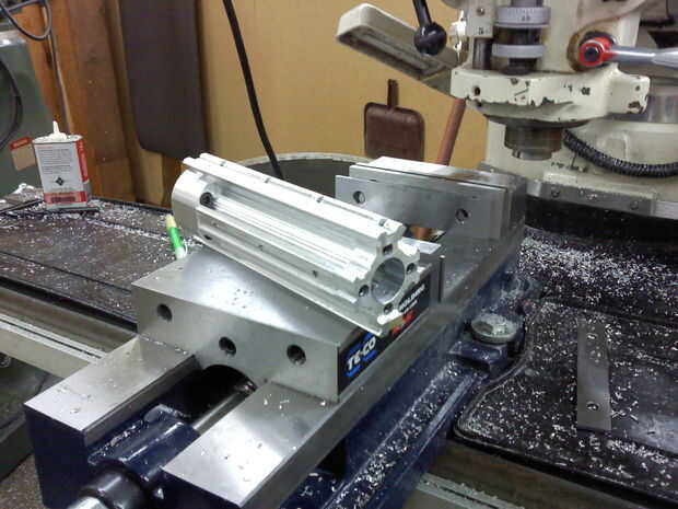 Comencé construyendo cualquier plantillas necesitadas. La parte difícil fue cortar los ángulos de 45 grados en las abrazaderas de la vista para los carriles de picatinny. Construí una plantilla del ángulo de 45 grados ya que no tengo ningún mitre útiles para el molino. Luego hizo los accesorios temporales para las piezas de vista unir a la plantilla. Hice la plantilla con algunos soportes de esquina y sujeta en el molino. Hizo para una plantilla muy agradable.