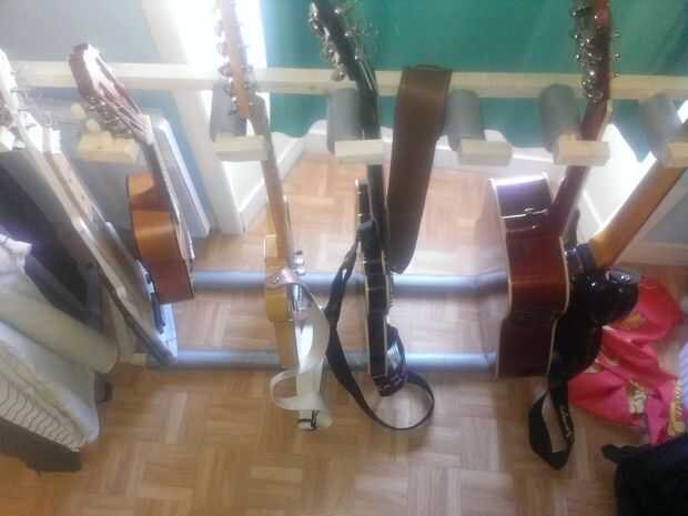 Empecé a cortar la madera con el tamaño que necesitaba, tengo elegido 20 cm / guitare de ancho y 80 cm para la altura. antes de ligarse tienes que poner los tubos en el Departamento de bosques. opté por presión de la uña. Finalmente usted construir su titular con à poco rebosante de 10 cm y su hecho