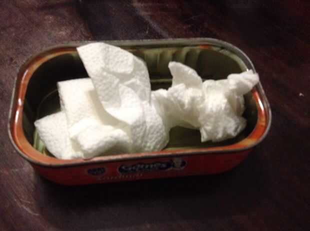 Utilizar una lata de sardinha e algum combustível sua queima demore para fornecer un quantidade de calor o corpo precisa para criar muito vapor.