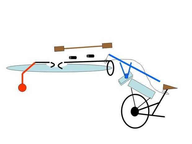 Un simple y agradable PVC kayak carrito para remolcar con la bicicleta.